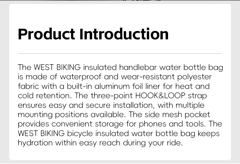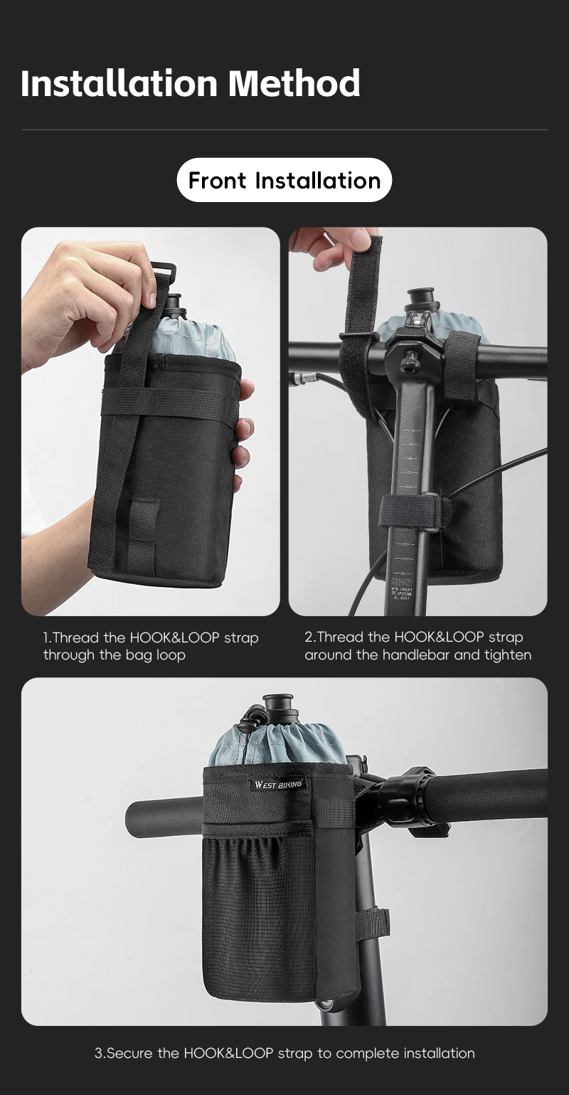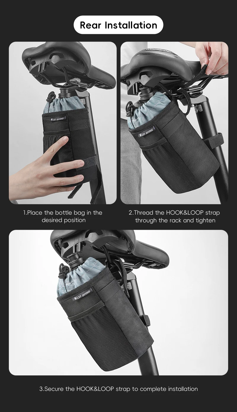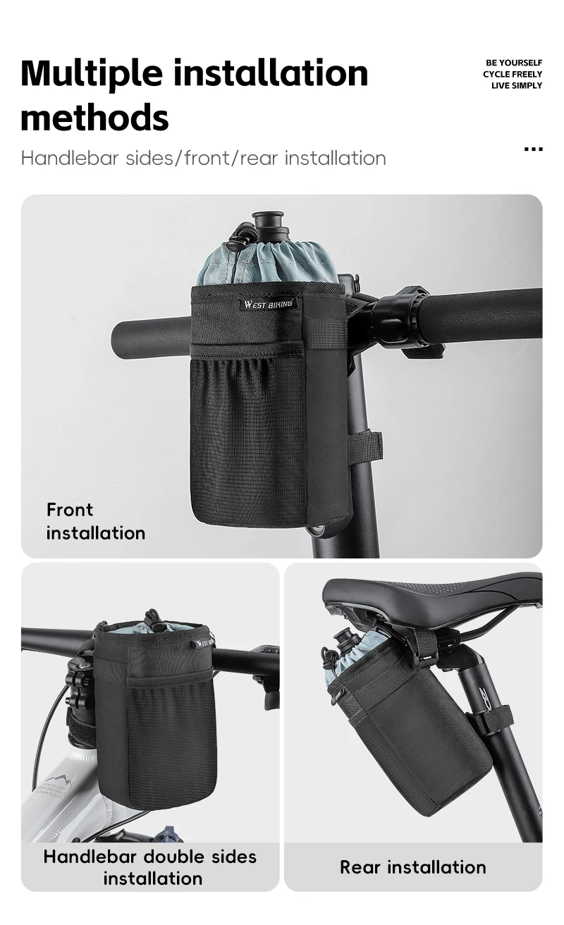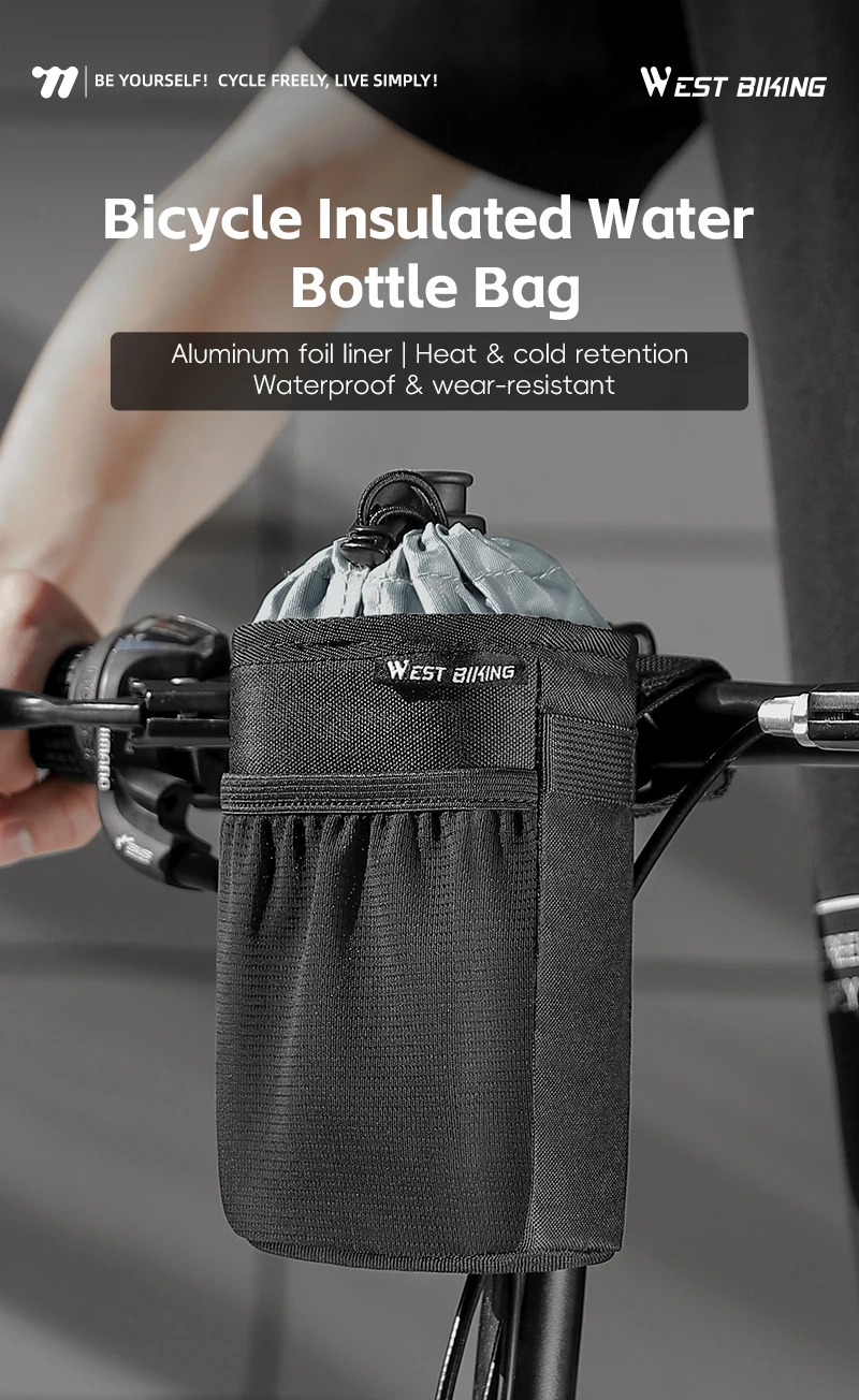 WEST BIKING Bicycle Water Bottle Bag 1L Large Capacity Insulated Handlebar Water Bottle Bag Outdoor Cycling Kettle Carrier Bag